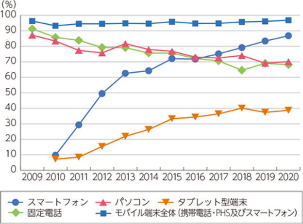 (出典:第1部特集デジタルで支える暮らしと経済「図表1-1-1-1 情報通信機器の世帯保有率」)